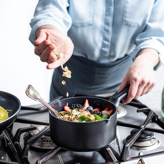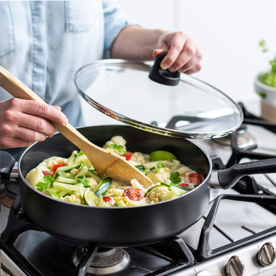El revestimiento cerámico antiadherente característico de GreenPan no contiene PFAS, por lo que puede hacer que cualquier comida sea más saludable y fácil.
